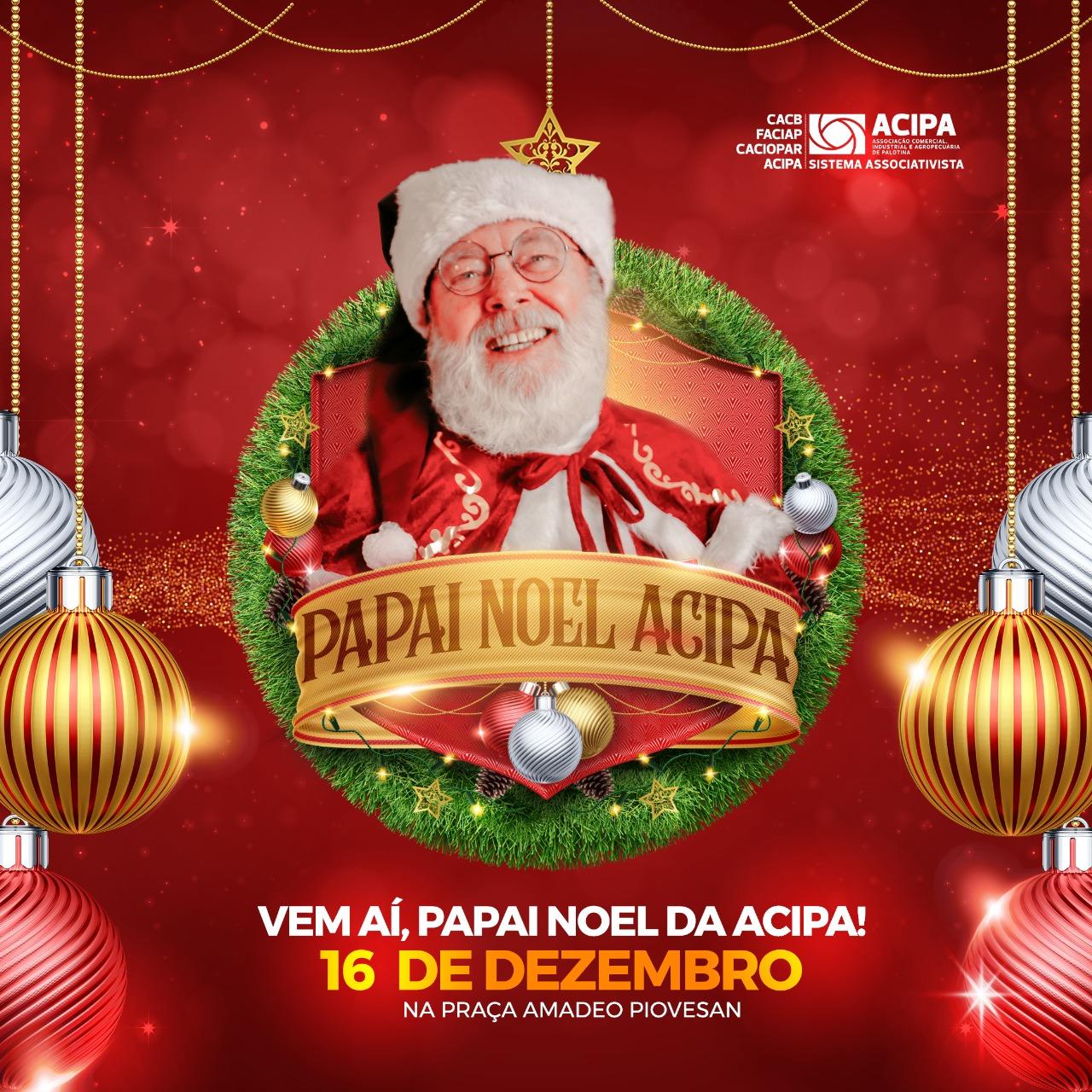 No dia 16 de dezembro, a Praça Amadeu Piovesan será palco do Papai Noel da Acipa, um momento especial preparado para as crianças. A entidade informou que o bom velhinho estará disponível para tirar fotos e distribuir balas e doces, contribuindo para deixar a atmosfera natalina ainda mais mágica no centro da cidade.