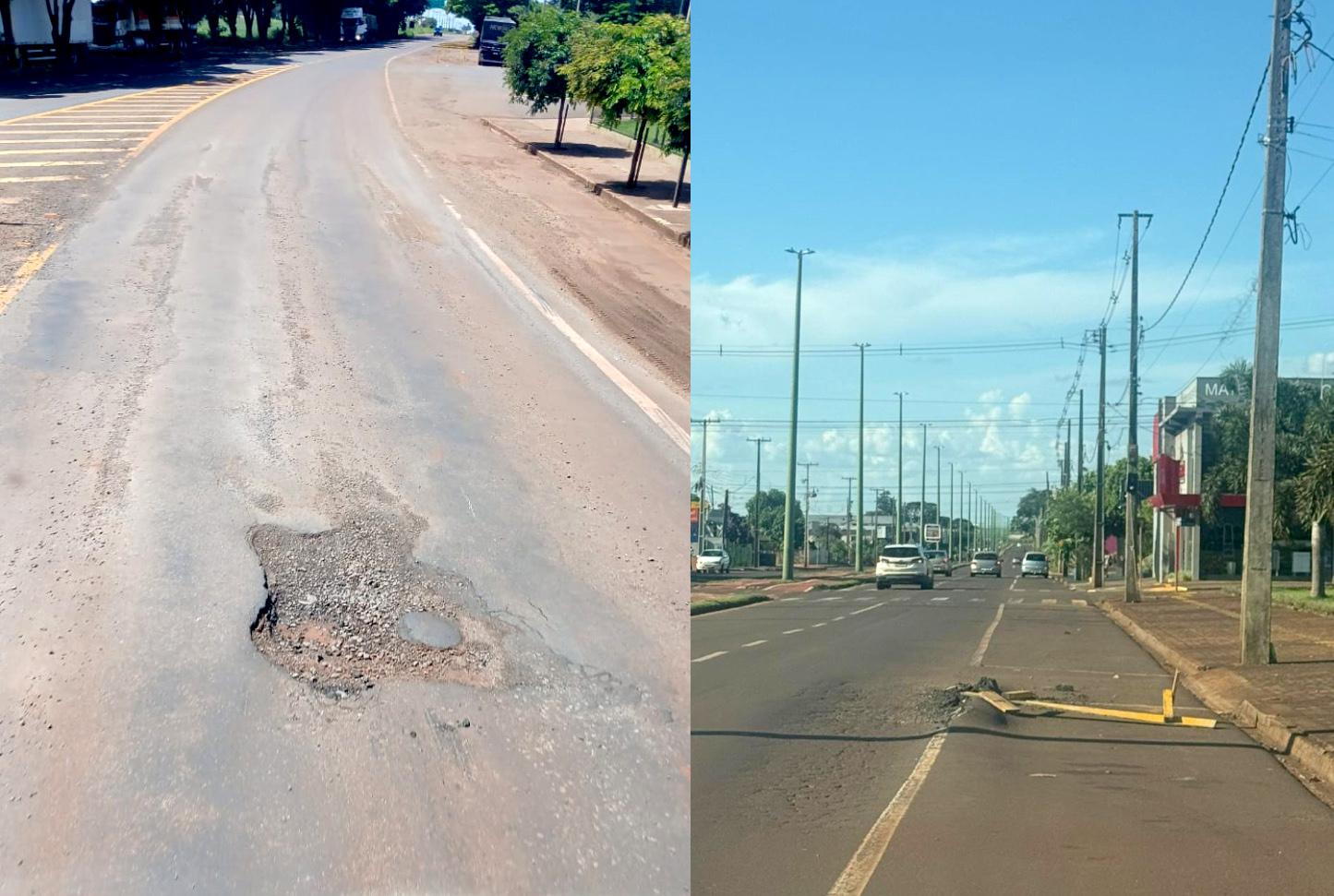 O asfalto danificado e a presença de buracos nas duas pontas da Avenida Presidente Kennedy, em Palotina, têm gerado preocupação entre motoristas e pedestres. Os trechos críticos estão localizados nas saídas da cidade em direção a Francisco Alves e a Toledo, pontos de tráfego intenso e circulação constante de veículos leves, pesados e pessoas a pé.