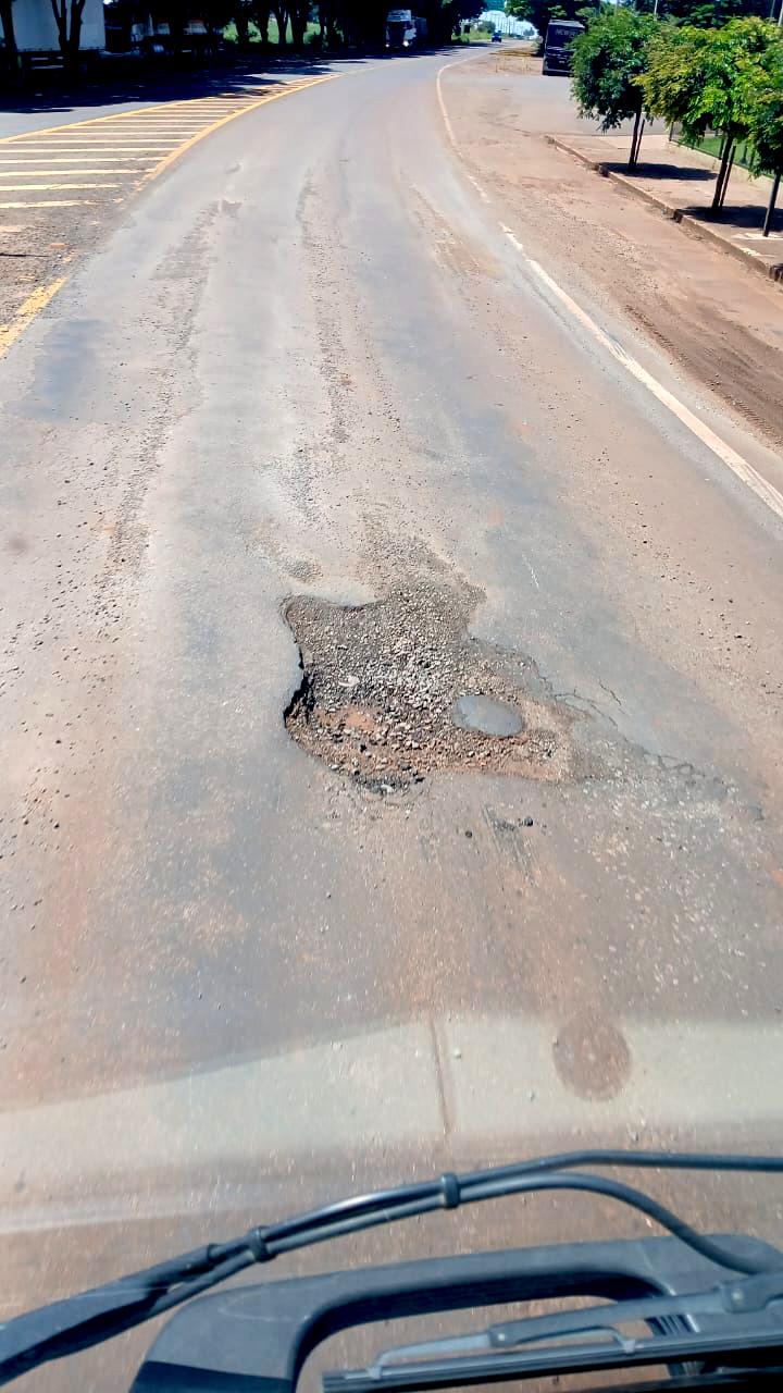 Buraco no meio da pista na saída para Toledo