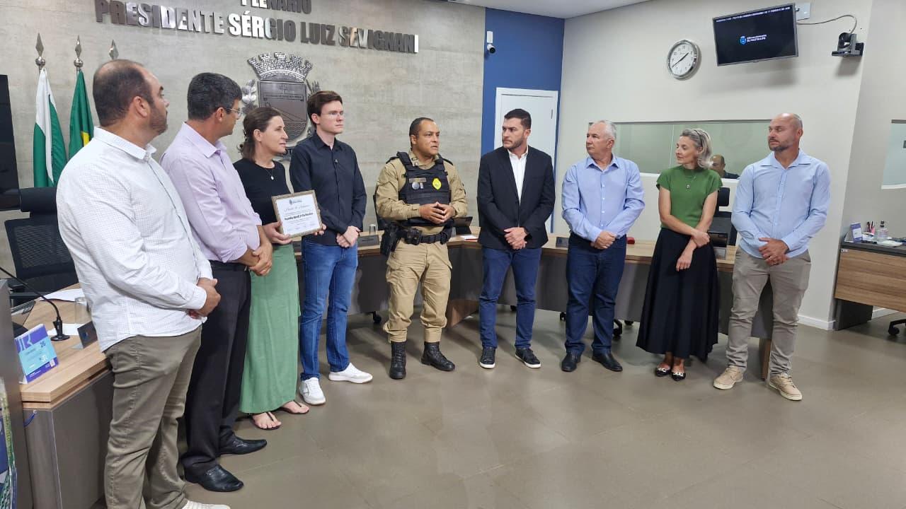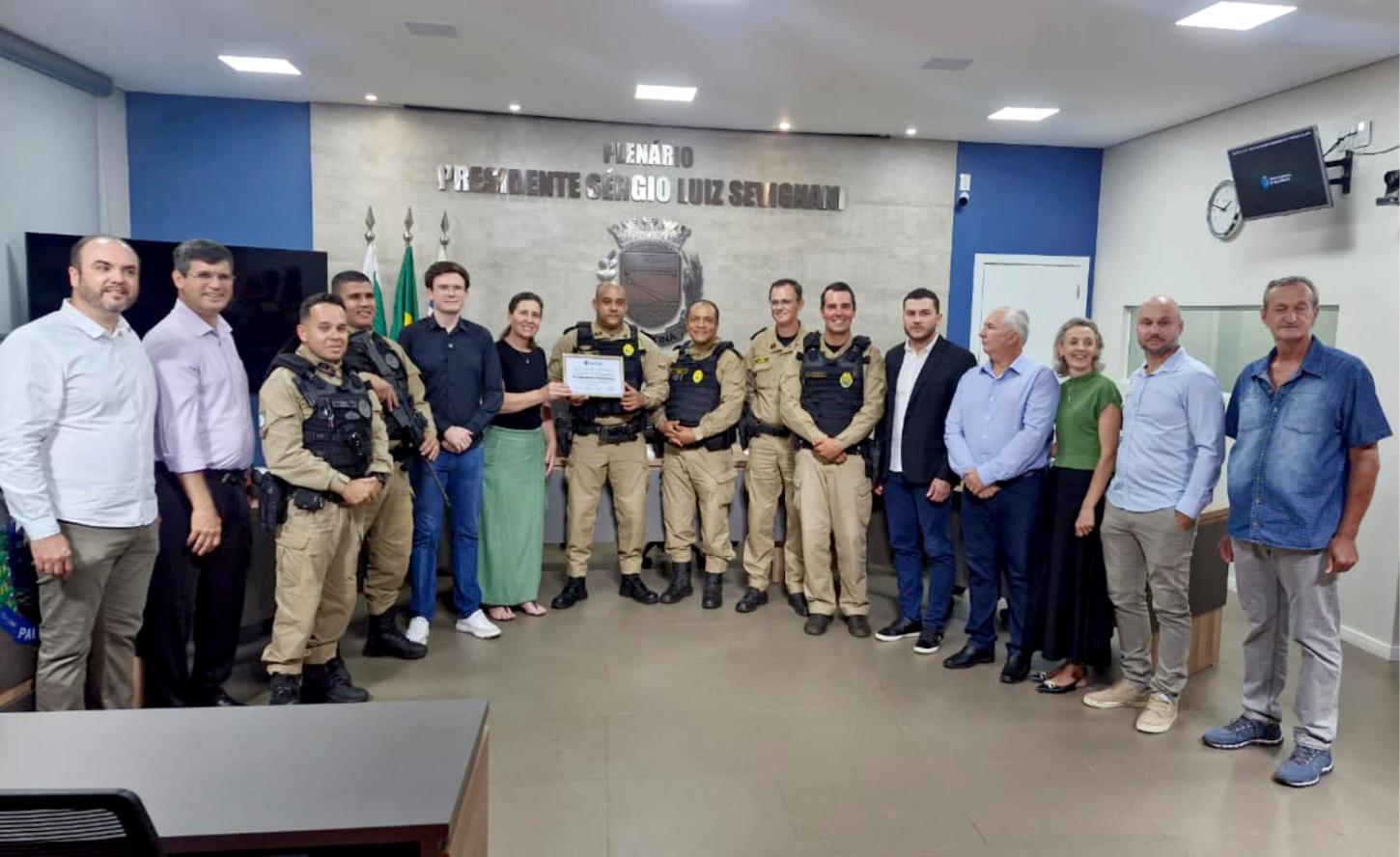 A tarde desta sexta-feira (13) foi marcada por clima de festa e reconhecimento no plenário da Câmara Municipal de Palotina com a entrega uma Moção de Aplausos nº 001/2026, em homenagem à Patrulha Rural da Polícia Militar de Palotina, destacando os relevantes serviços prestados à segurança pública e à proteção da zona rural do município.