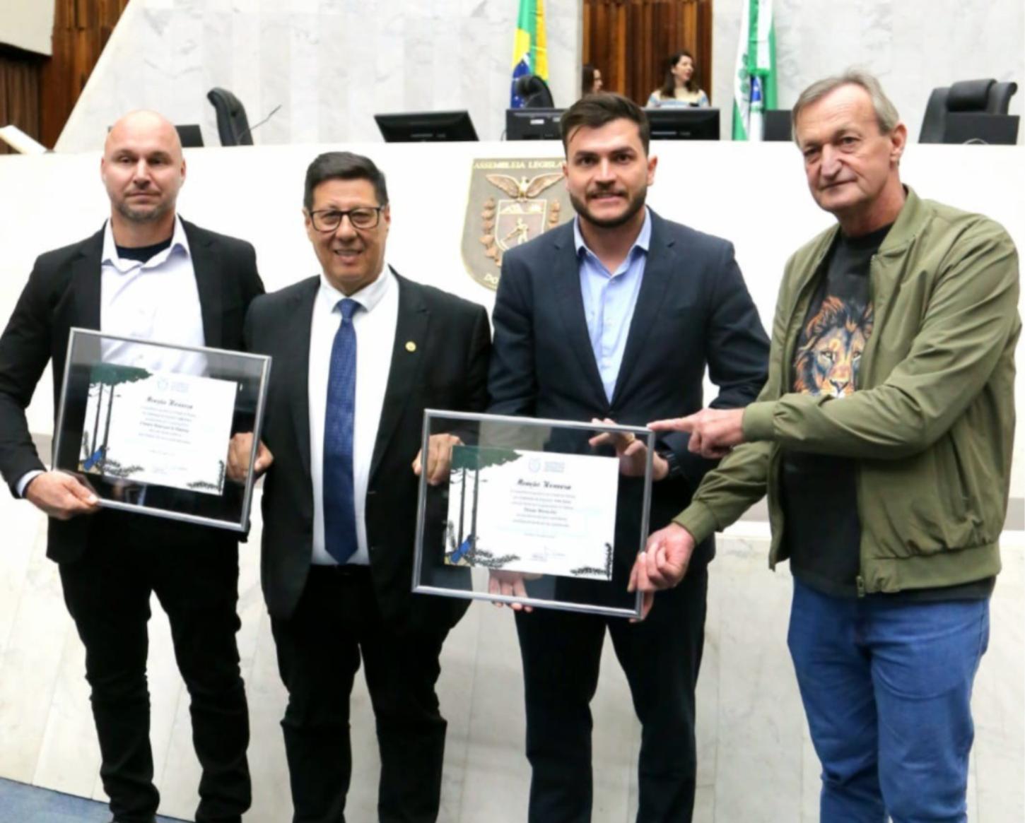 A menção honrosa foi entregue durante sessão plenária realizada no dia 24 de junho, em Curitiba e proposta pelo deputado estadual Adão Litro (PSD). O reconhecimento é fruto da iniciativa da Câmara de Palotina de participar ativamente da Expo Palotina 2025, realizada entre os dias 15 e 18 de maio, onde promoveu um estande institucional com foco em diálogo, transparência e engajamento popular.