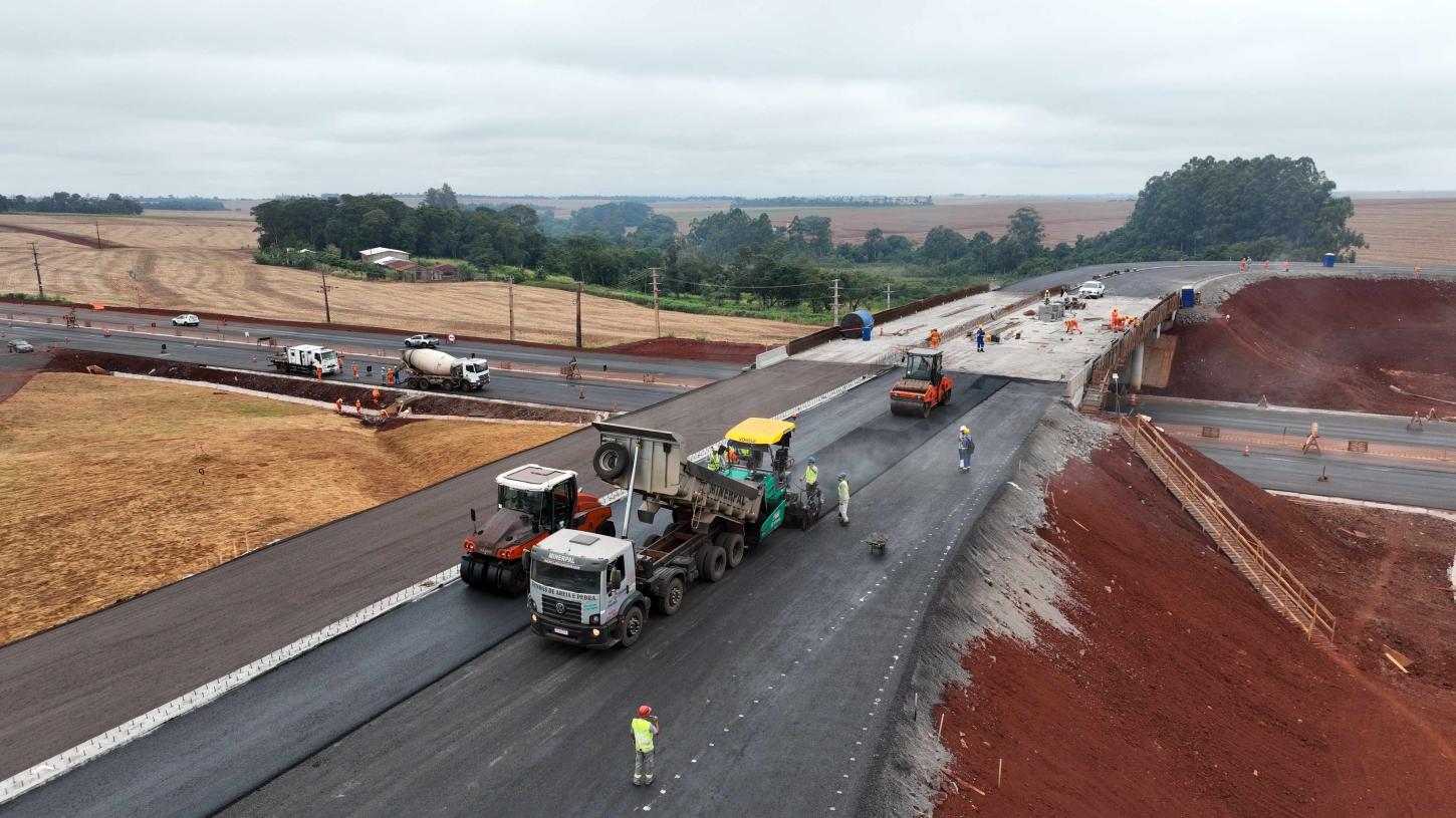 Decorridos 18 dos 20 meses previstos no contrato, a construção do contorno viário de Palotina (PR) está em processo de finalização. A construtora Castilho concentra a maior parte de seus 130 funcionários atuantes na obra, atualmente, em trabalhos de pavimentação, drenagem, concretagem e sinalização. Dos 15,2 quilômetros de extensão da PR 975, que será constituída pelos três trechos do contorno, 14 quilômetros de pavimentação estão concluídos. A parte mais complexa da obra, o viaduto sobre a PR 182, estava na fase de concretagem ao final de janeiro.