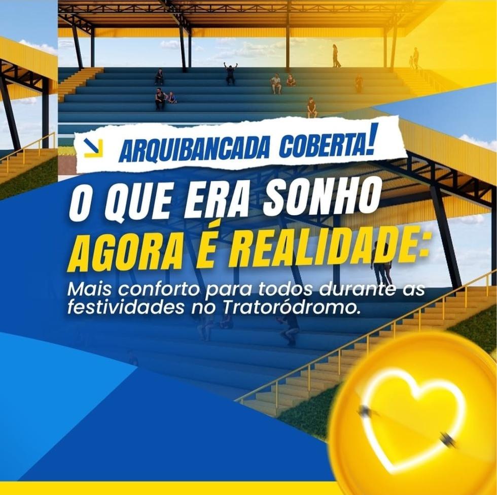 O recurso será aplicado na cobertura da arquibancada fixa do Tratoródromo, proporcionando mais conforto, segurança e melhor estrutura para o público que prestigia as festividades realizadas no local. O espaço é conhecido por sediar o tradicional Arrancadão de Tratores, evento que simboliza a força do agronegócio e faz parte da identidade cultural do município.