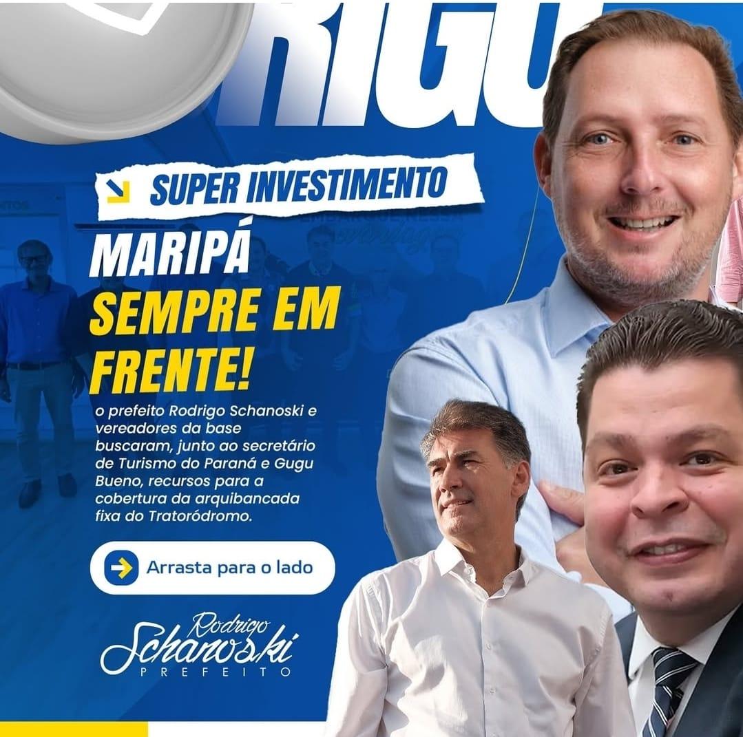 O município de Maripá conquistou a abertura de prioridade junto ao Governo do Estado do Paraná para a liberação de um investimento de aproximadamente R$ 1,2 milhão, que será destinado à cobertura da arquibancada fixa do Tratoródromo. A confirmação foi comemorada pelo prefeito de Maripá e presidente da Associação dos Municípios do Oeste do Paraná (Amop), Rodrigo Schanoski, que destacou a importância da parceria institucional para viabilizar a obra.