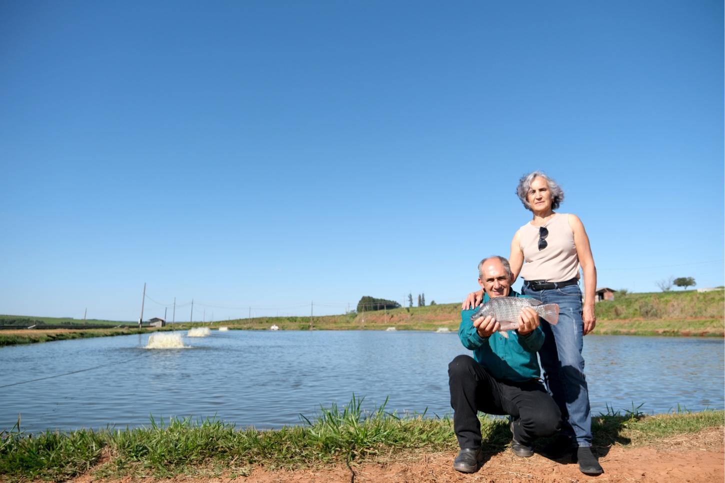 Na propriedade, que produz um milhão de peixes anualmente, distribuídos 13 hectares de lâmina d’água, o marido da arquiteta Edna Maria, inicialmente não tinha interesse na piscicultura. Começou para ajudar a levar rede trifásica para o entorno, a convite de seu cunhado Paulo de Mattos. Com “missão dada, missão cumprida”, hoje, já tem projeto para expansão de mais 90 mil metros quadrados.