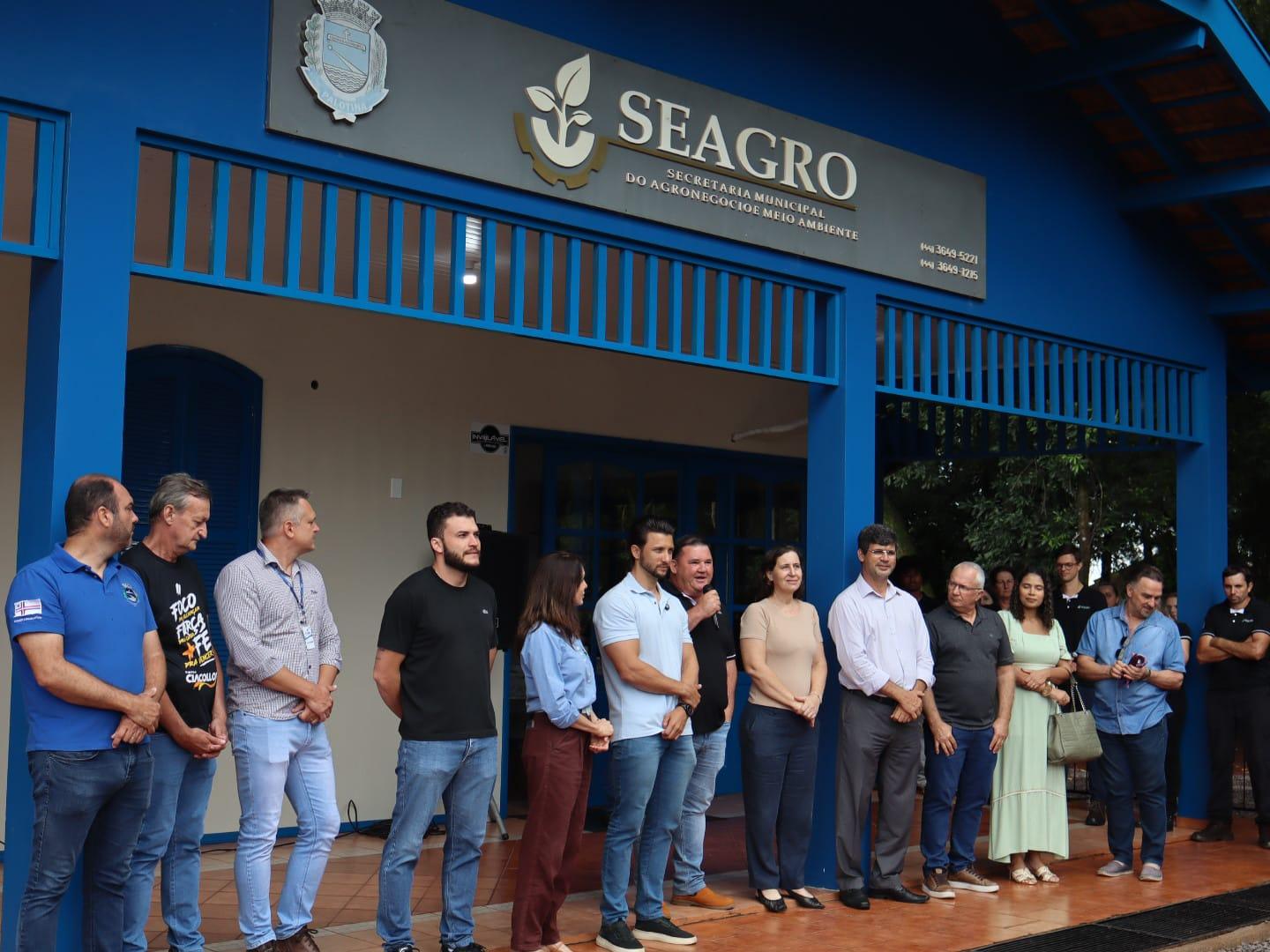 Foi inaugurado na manhã desta quarta-feira (1º) o novo espaço da Secretaria Municipal de Agronegócio e Meio Ambiente (Seagro), localizado no Parque Ambiental Ida Vendruscolo (antiga AFITRA). O evento reuniu diversas lideranças municipais, entre elas secretários, vereadores e representantes de entidades ligadas ao setor produtivo.