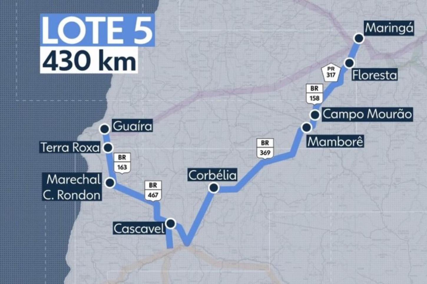O lote reúne 432,77 quilômetros de rodovias que cortam as regiões Oeste e Noroeste do estado, abrangendo cinco rodovias estaduais e três federais: BR-163, BR-369, BR-467, PR-158, PR-317, PR-467, PR-977 e PR-978. Segundo a Agência Nacional de Transportes Terrestres (ANTT), o consórcio deverá assumir a gestão das vias em até 30 dias após a assinatura do contrato, prevista para fevereiro de 2026.