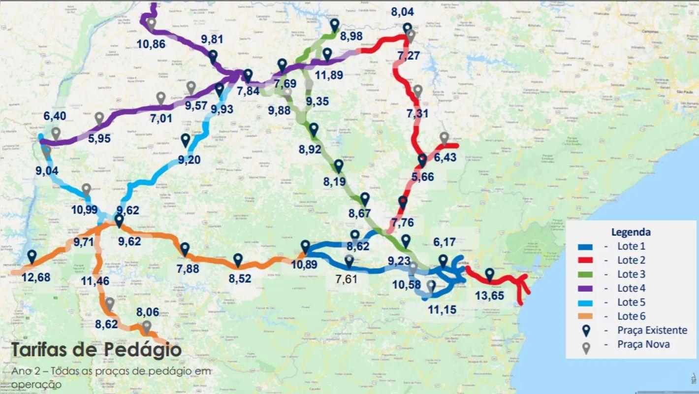 O Lote 5 contará com cinco praças de pedágio, sendo duas novas instalações e três já existentes: