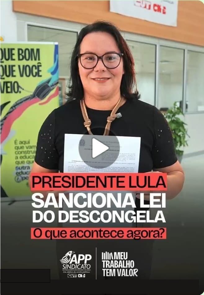 A presidente da APP-Sindicato, Walkiria Mazeto, divulgou um vídeo no qual comenta a sanção da Lei do Descongela pelo presidente da República. A legislação representa um marco para os trabalhadores da educação, ao restabelecer direitos que haviam sido suspensos durante o período de restrições impostas nos últimos anos.