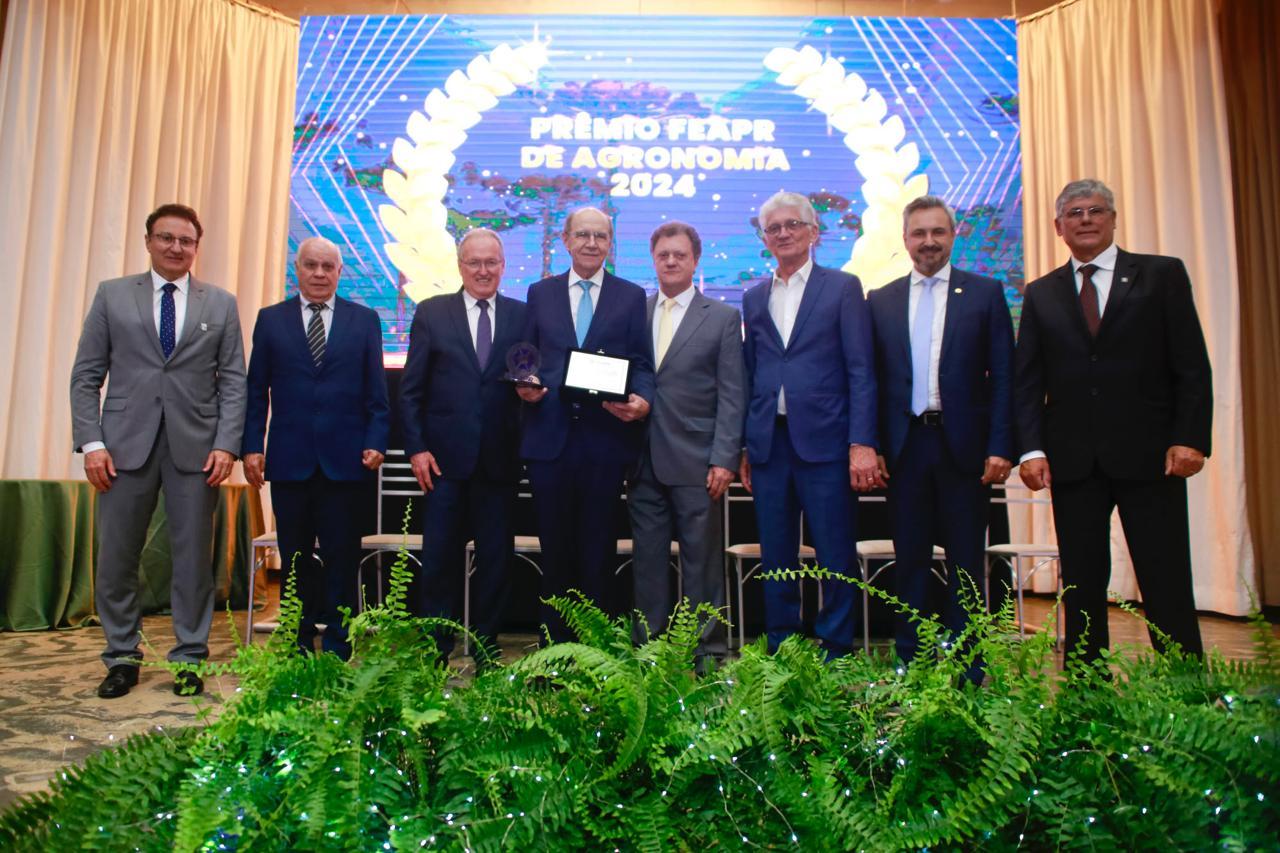 O presidente da C.Vale, Alfredo Lang, recebeu, no dia 16 de dezembro, o prêmio FEAPR de Agronomia 2024, na categoria Relevantes Serviços. A homenagem foi concedida pela Federação dos Engenheiros Agrônomos do Paraná, que representa 15 mil profissionais do estado. O presidente da entidade Cesar Veronese justificou a premiação “pelo trabalho em prol da agronomia e do agronegócio paranaense e brasileiro”. Também foram homenageados Amarildo Pasini (na área de ensino), Décio Gazzoni (pesquisa) e Ricardo Accioli Caderari (cooperativismo, pela Coamo).