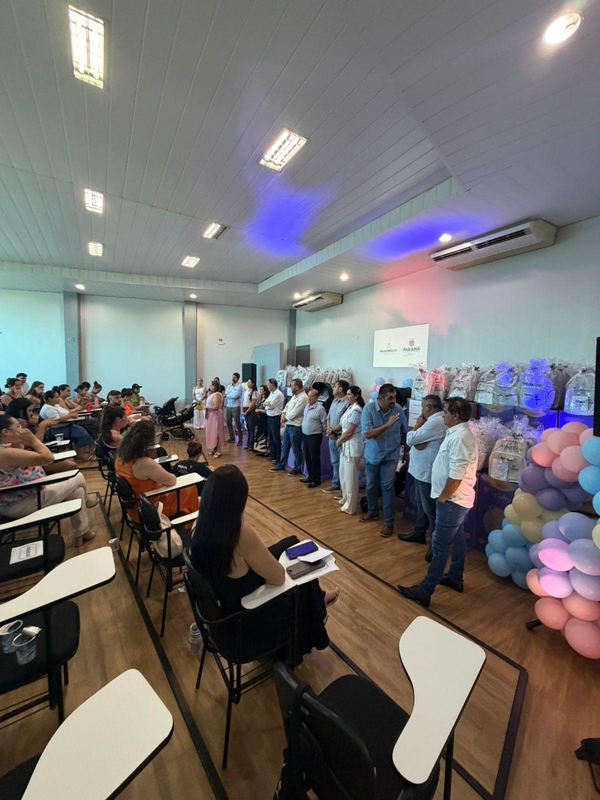 A Escola de Trabalho de Terra Roxa foi palco, nesta quinta-feira (15), da entrega de kits maternidade a gestantes do município. A iniciativa foi promovida pela Administração Municipal, por meio da Secretaria de Desenvolvimento Social e Família, e integra o programa Nascer Bem Paraná, voltado ao cuidado e à proteção da primeira infância.