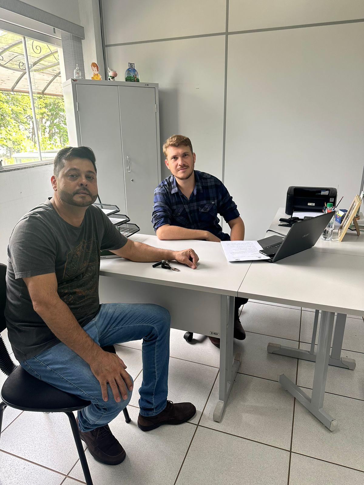 Nesta sexta-feira, 31 de janeiro, o vereador de Terra Roxa, Carlos Diniz (PSD), realizou uma reunião com o Secretário Municipal de Obras, Marcelo Henrique dos Santos, para discutir medidas que visam apoiar os pequenos produtores do município. Durante o encontro, Diniz fez um pedido formal em nome da Câmara de Vereadores, solicitando a contratação de dois agrônomos para atender às demandas dos agricultores locais.
